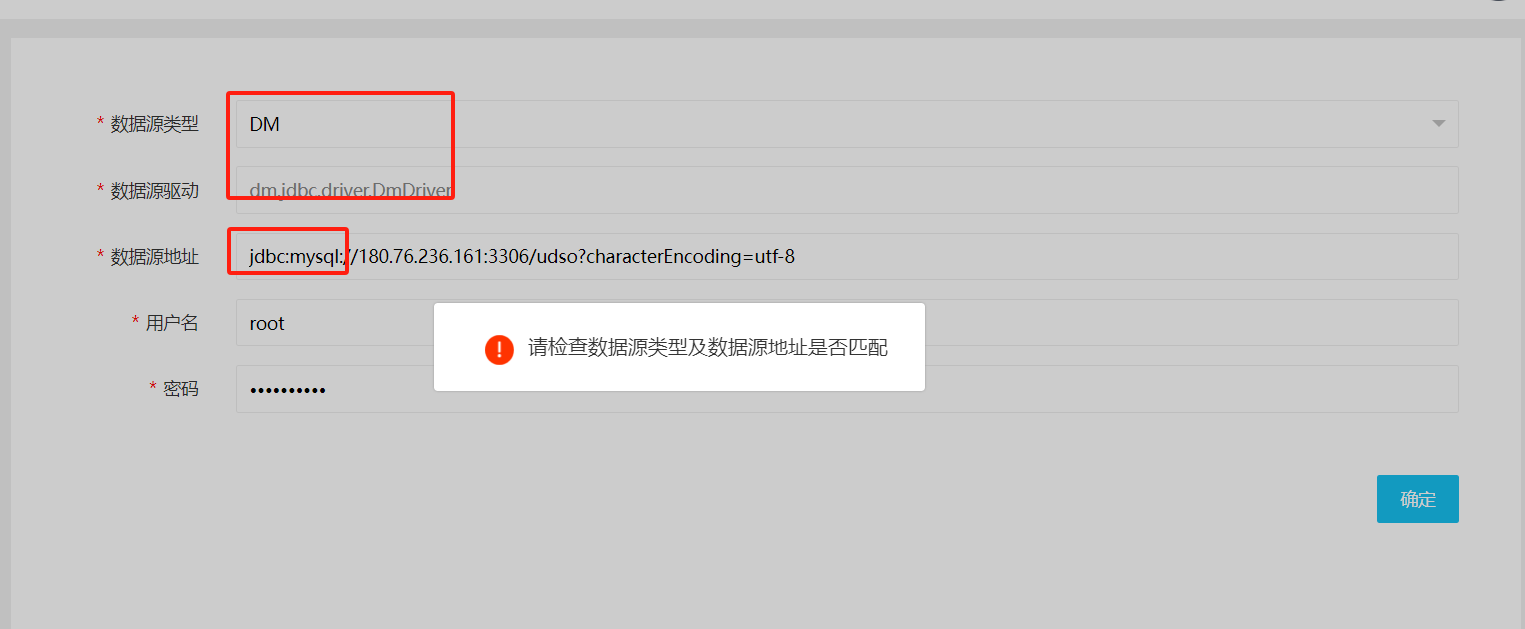 数据源信息有误进行提示