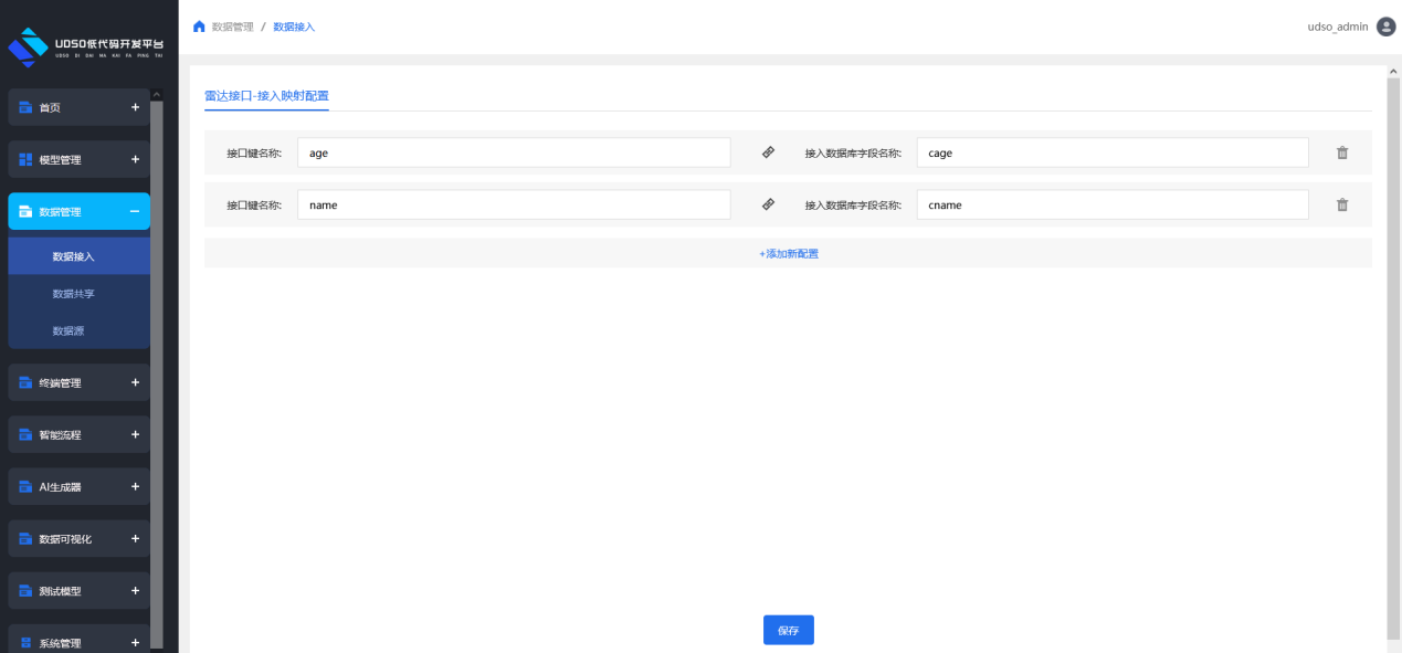 接入数据库字段名称:为平台模型中的字段名称。