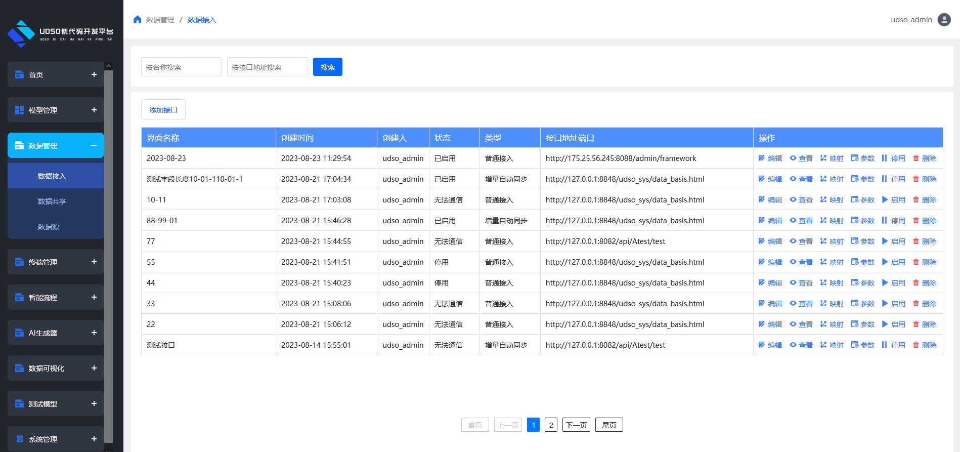 点击左侧菜单数据管理->数据接入->添加接口