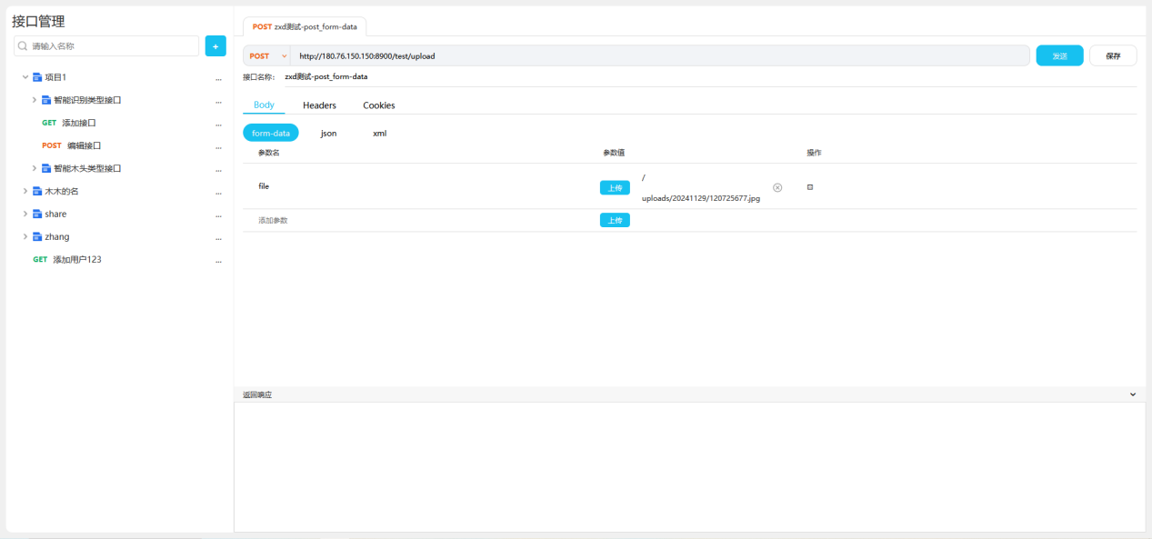 接口发送目前支持GET、POST、PUT,类型支持如下图所示。