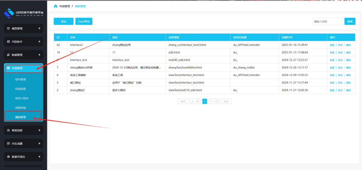 Ⅰ模板管理:点击左侧菜单“终端视图/模板管理”进入模板列表页面。