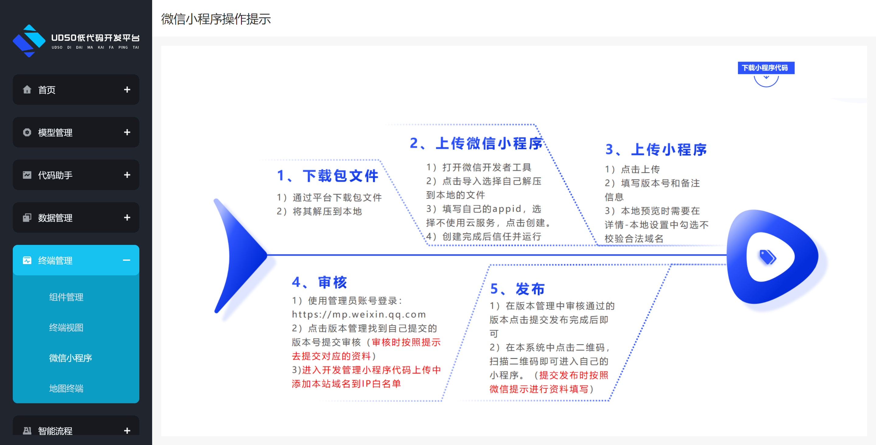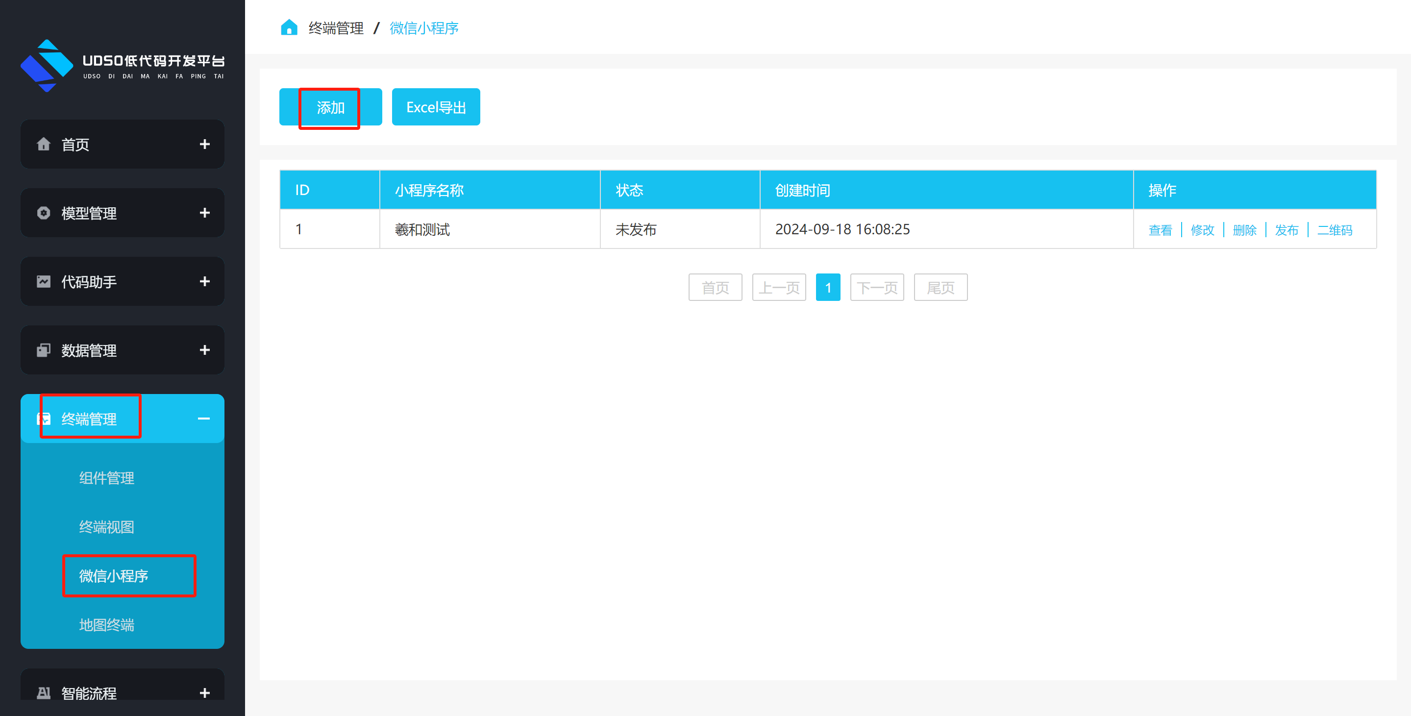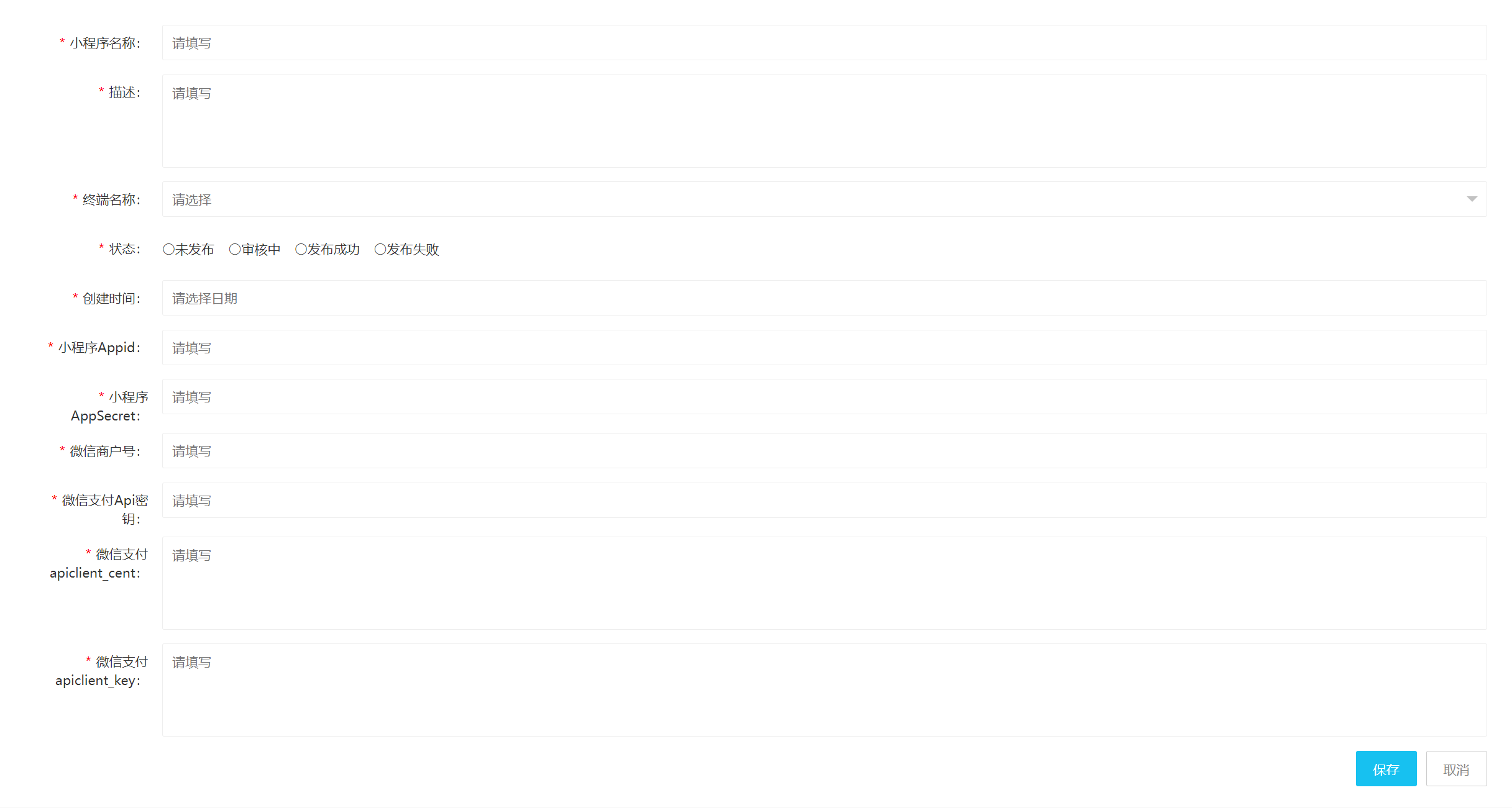 点击左侧菜单“终端管理->微信小程序->添加”进入到添加页面